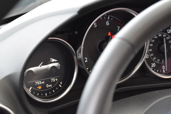 メーター内の液晶ディスプレイで、開閉中の屋根が表示されていた。なお、10km/h以下の走行速度なら開閉が可能ということだ