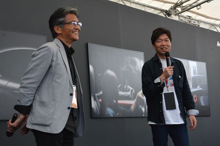 2代目(NB型)と3代目(NC型)ロードスターの開発責任者の貴島孝雄さん(写真左)と、デザイン本部長を務められた福田成徳さん(写真右)も登場