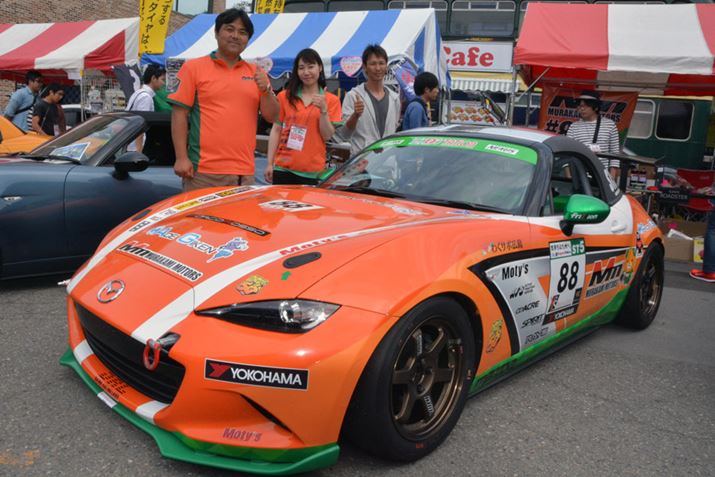 今年5月のスーパー耐久にND型で参戦し、優勝した「村上モータース」の村上博幸さん。会場でも多くの人から祝福をうけていた