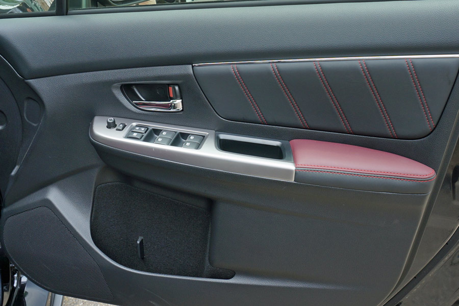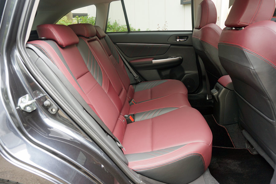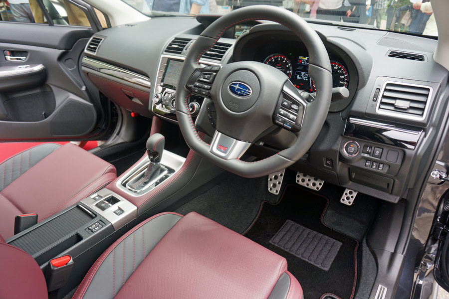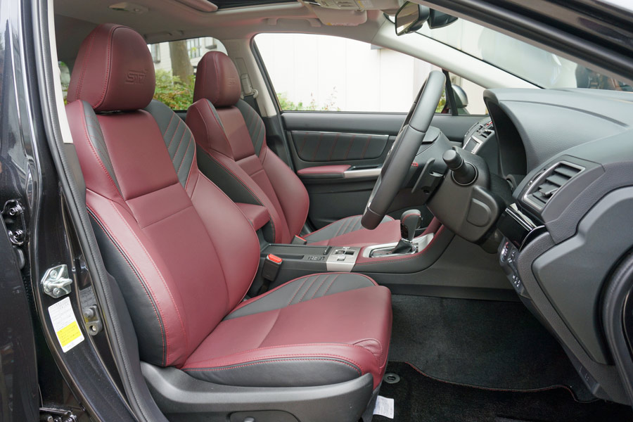専用のボルドーのレザーシート。見た目はかなりラグジュアリーな雰囲気だが、シートは側面の張り出しが大きく、STI(SUBARU TECHNICA INTERNATIONAL)らしいスポーティーさも感じられる
