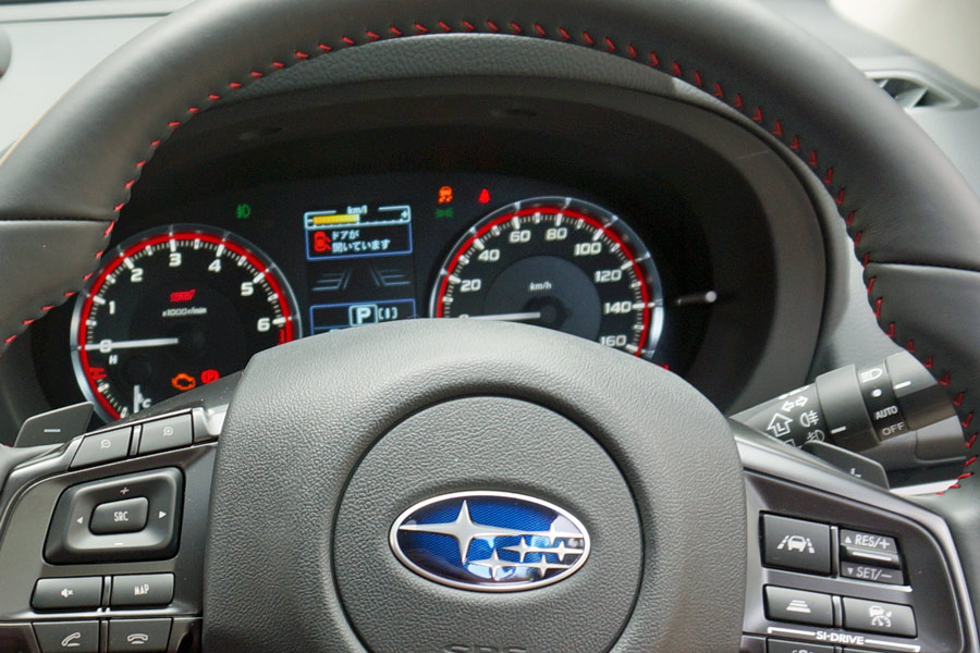 「レヴォーグ STI Sport」のエクステリアは、専用のパーツを採用することで質感が高められている。専用デザインの18インチのアルミホイールや、同じく専用デザインのフロントグリルやバンパー、LEDフォグランプなどにより、アグレッシブではあるが、いわゆる“走り屋仕様”というわけではない、「STI Sport」という名前のイメージよりもラグジュアリーな印象を受ける。内装は、専用の本革シートを中心に、ステアリングやドアパネル、ダッシュボード、シフトレバーなど各所に入れられたステッチが特徴だ。インテリアの印象も、エクステリアと同様、スポーティーさを兼ね備えたラグジュアリーなものとなっている。
