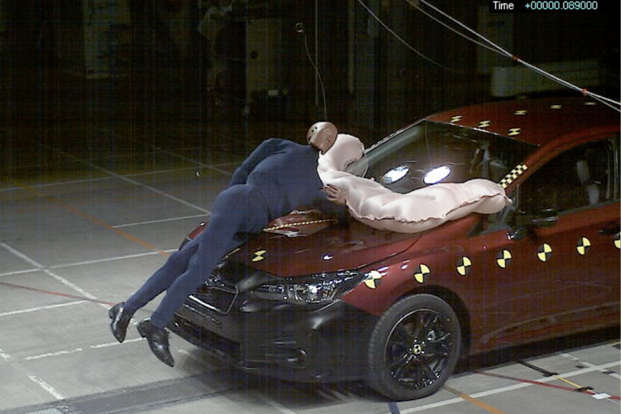 5代目インプレッサの注目装備である歩行者保護エアバッグは、全車に標準装備される