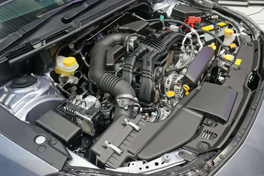 今回の展示車には、154馬力を発揮する「FB20 水平対向4気筒 2リッター DOHC16バルブ デュアルAVCS直噴」エンジンが搭載されていた