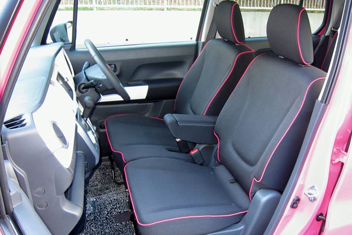 スズキ「ハスラー」は、シートのパイピングに特長的なカラーを採用しており、効果的なアクセントになっている