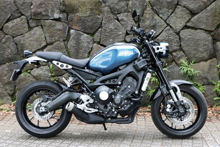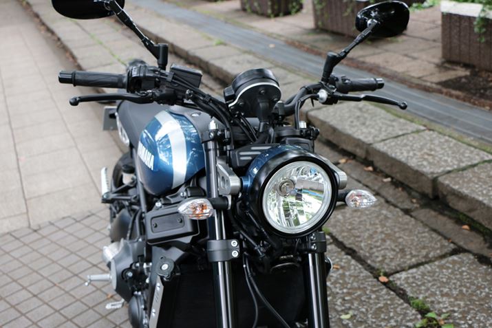 XSR900は、オーセンティックな懐かしさを感じる仕上がり。曲線を描くタンクが目を引くデザインで、ややゴツさを感じるエンジンやフレームはブラックアウトされている
