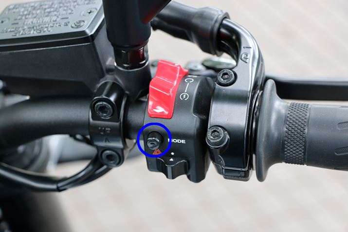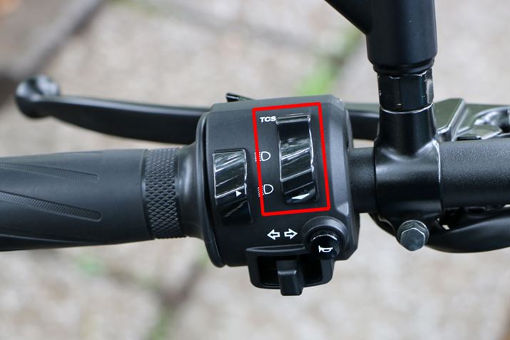 左手側にあるTCSの切り替えスイッチでは、「1(弱)」「2(強)」「OFF」で制御できる。ちなみに、「OFF」が新しく搭載されたモード