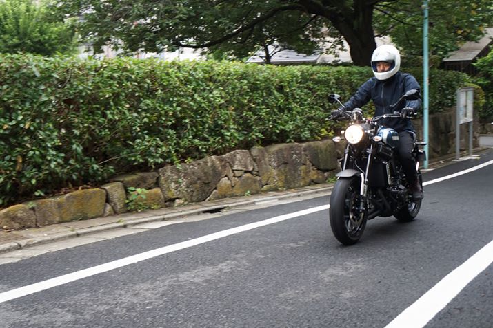実際に走り出して気がつくのは、エンジンのトルク感。低速からアクセルを開けた際にグググッと押し出すような感覚で、とても気持ちいい。表現しにくいが、4気筒エンジンのトルク感がグーッという感じなのに対して、XSR900の3気筒エンジンはタイヤが細かく地面を引っ掻いて車体を前に進ませるような具合だ。そこからの回転の上昇は非常にスムーズで、あっという間に速度が乗る。一般道ではすぐに制限速度に達してしまうので、そこまでアクセルを開けることは少ないだろう。ただ、制限速度に到達するまでのトルク感が爽快なので、速度が出ない街中でも十分に楽しい。