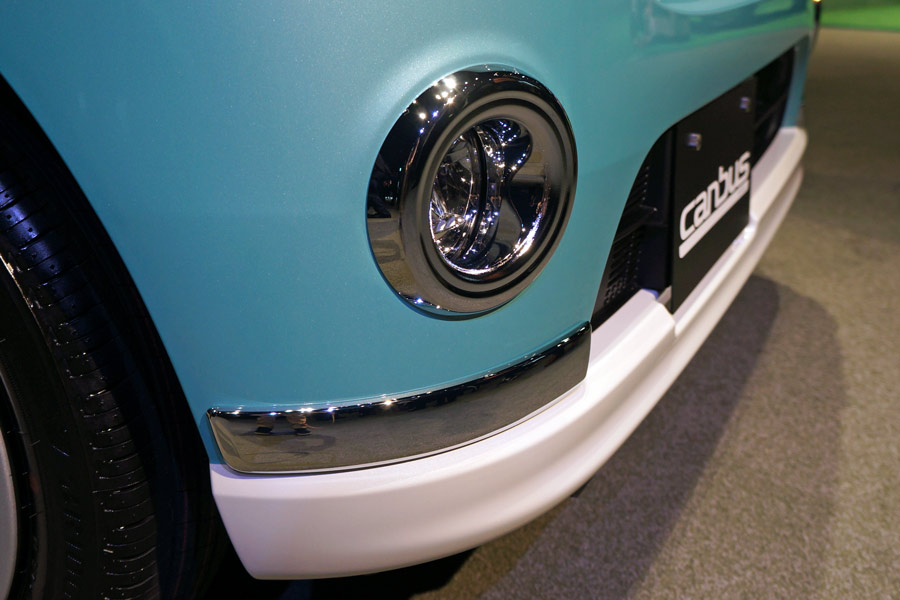 「ムーヴ キャンバス」は、内外のデザインとユーザビリティーに注力した軽自動車。未婚の女性をユーザーとして強く意識している。その特徴が現れているのは、バランスのよい丸型のシルエットだ。全高は1,655mmで、トール型ボディの代表的なモデルである「タント」の1,750mmより100mm近くも低い。これは、車内で子供の着替えをする必要がなく、結果としてデザインを優先できたということの現れだ。また、短いボンネットや丸みを帯びたデザインは、どことなくクラシカルで、アンティークな生活雑貨に通じる雰囲気がある