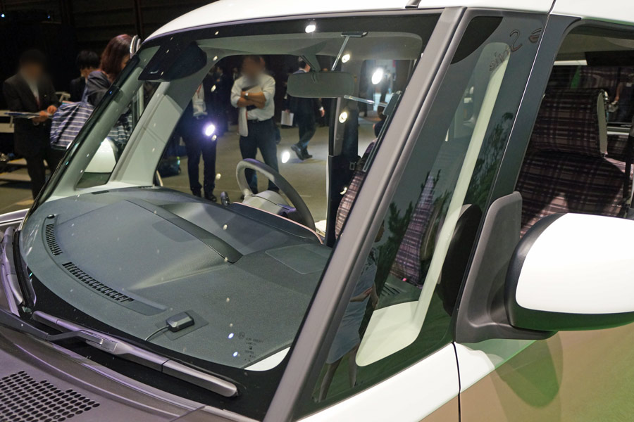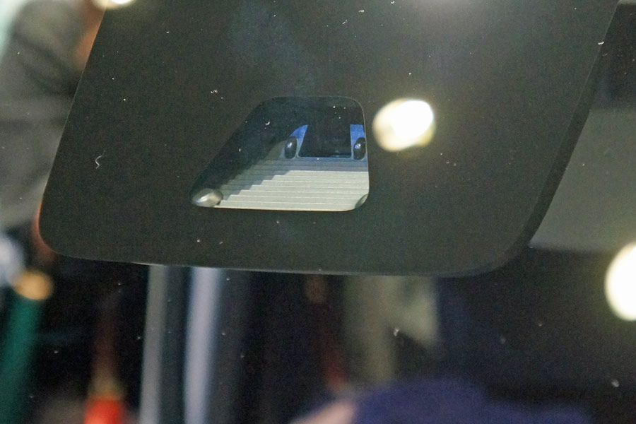 フロントガラスには一眼のカメラが備わり運転支援システム「スマアシII」で活用する。衝突回避支援ブレーキ、衝突警報、車線逸脱警報、誤発進抑制制御、先行車発進お知らせの各機能が利用可能だ