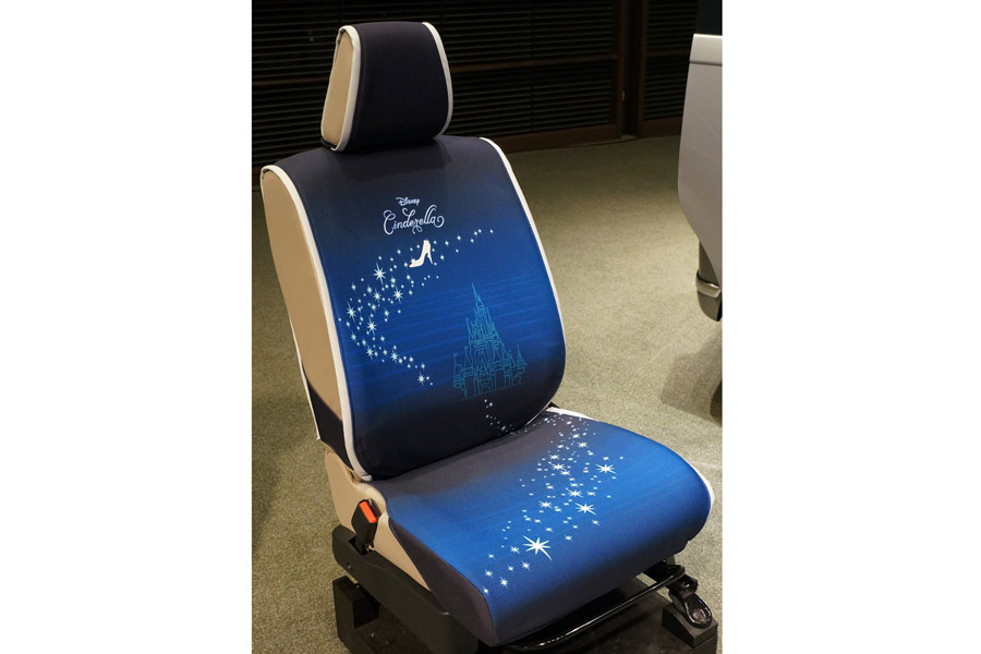 自宅で洗えるシートカバーがオプションで用意される。ストライプやチェック柄のほか、写真のようなシンデレラや、ミッキーマウスの柄も選ぶことができる