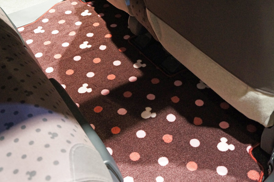 ミッキーマウスがモチーフのフロアマットも別売りで選ぶことができる