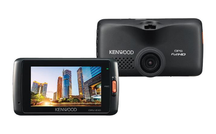 ケンウッドのドライブレコーダーで中核モデルとなるのが、この「DRV-610」だ。ボディサイズは、91(幅)×H(高さ、最高部88)×37(奥行き)mm、重量約104gのボディに画素数約340万のCMOSイメージセンサーを採用し、最高解像度2304×1296の動画撮影に対応する。画質に対するこだわりも高く、F1.8の大口径レンズと白とびや黒つぶれを防止する「WDR」機能を備えており、さまざまな撮影条件に対応する。動画のフレームレートは27.5fpsで、東日本と西日本いずれのLED信号でもフリッカーを抑えることが可能だ。動画の記録画角は水平:121°、垂直:59°、対角:141°。