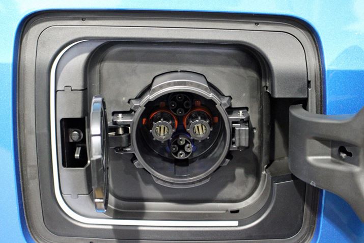 リアに備わる充電ポートは、日本仕様の急速充電規格「CHAdeMO(チャデモ)」に対応。約45 分で80%まで充電が可能だ