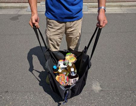 また、空の状態で常にハンモック状態にしておけば、そのまま荷物を投げ入れられます。普段エコバッグは使わずにスーパーのビニール袋の方も、袋ごと入れるだけで荷崩れを防げると思いますよ。