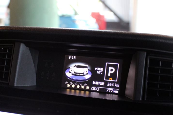 ダッシュボード上に備わるインフォメーションディスプレイ。通常は時計や燃費などの情報を表示するが、オリジナルのキャラクターが現れるなどエンターテインメントの要素もある
