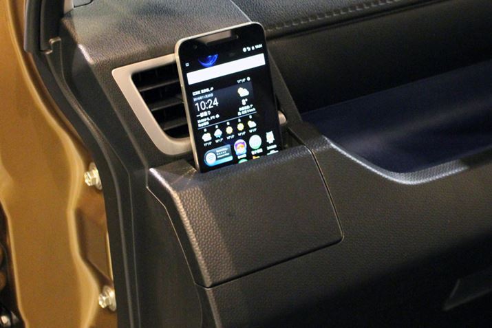 また、室内には、収納などさまざまな工夫が施されている。カップホルダーは車内に6個用意されているし、着脱可能で水洗いもできる大容量のゴミ箱や、ティッシュペーパーの箱を置くスペースもある。なお、前席に備わるカップホルダーは、スマートフォンを立てかけることも可能だ。このカップホルダーは以前から開発はしていたのだが、室内空間に限りのある軽自動車では設置できず、トールで始めて搭載されることになったものだという。