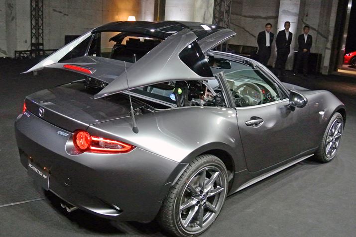 RFの名称の理由となったピラーを残すファストバック スタイルは、最初から計画されたものではなかった。計画の初期は、先代のNC型ロードスターRHTと同様に、ルーフ部をすべて収納することを検討していた。しかし、1年をかけて10案ほどを検討した結果、ルーフ部すべてを収納するのは不可能という結論になったという。