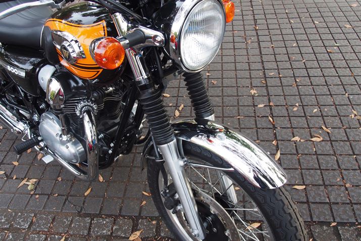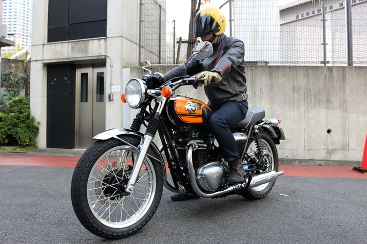 国内仕様の「650W1S」(写真は1968年式)。モデルとなった英国車を意識し、右足シフト左足ブレーキという設計とされた