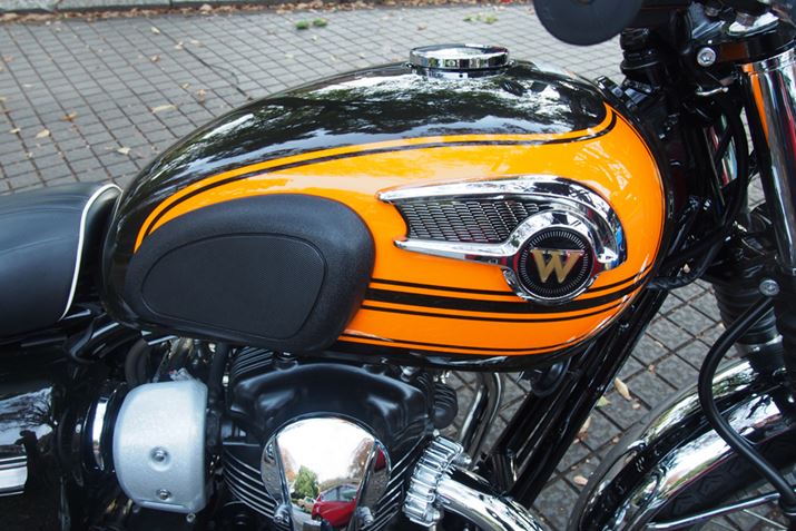 Wシリーズの有終の美を飾る「W800 Final Edition」は、初代Wシリーズの最終モデルである「650RS-W3」(1973〜1975年)の雰囲気を現代に蘇らせるというコンセプトのもと開発された。なかでも、開発者がもっとも想いを込めたのがタンク。塗装と焼付をそれぞれ4回ずつ行うという、「650RS-W3」と同様の工程を採用した点もニクいこだわりだ。さらに、カラーは「W800 Final Edition」のためだけに作成し、深みのある色合いと独特の輝きを実現した。