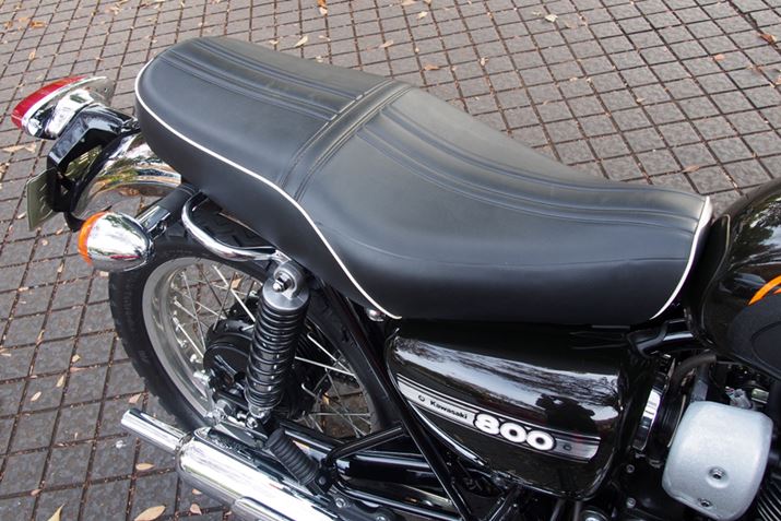白いモールの縁取りのあるシートは、「650RS-W3」を彷彿とさせる