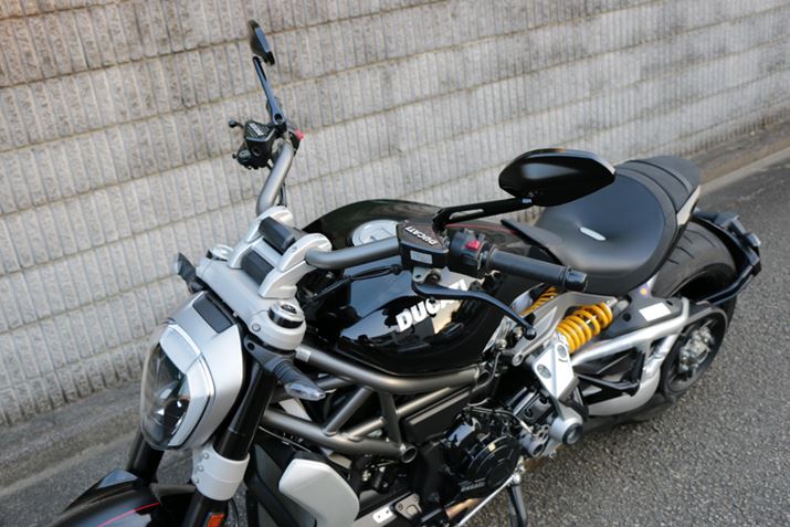 ハンドルはかなりライダー側に引き寄せられた形状となっており、従来のドゥカティのイメージとは大きく異なる