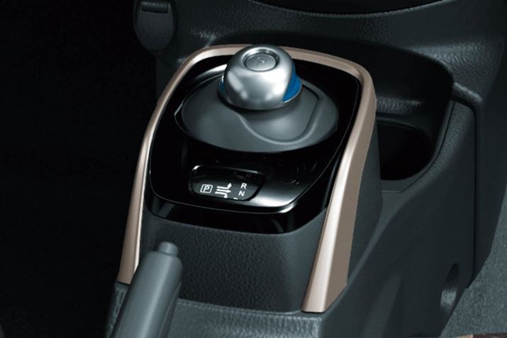 トランスミッション不要のモーター駆動らしく、シフトレバーはかなり斬新な形状。3種類の走行モードを選ぶことができる