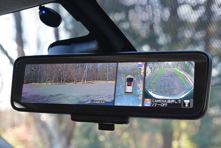 一部のグレードに搭載される、ディスプレイ化されたルームミラー「スマート・ルームミラー」。明るさ調整やアラウンドビュー表示も可能で、視認性が高まった