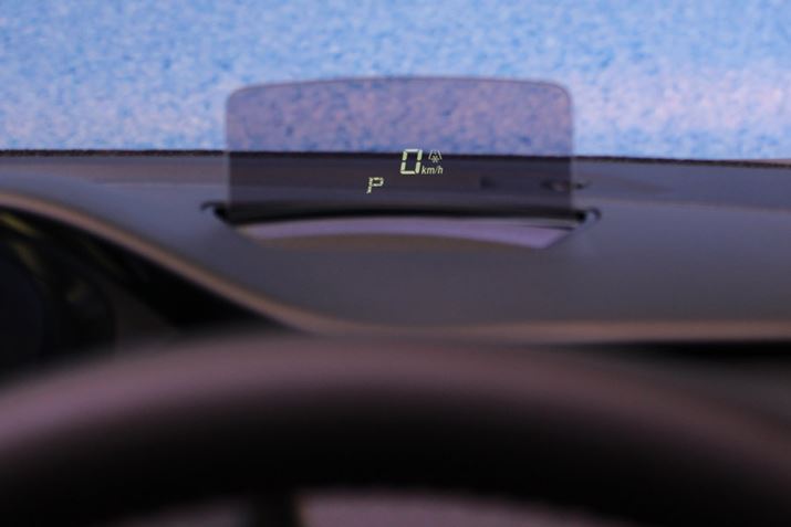 軽自動車初搭載となるヘッドアップディスプレイ。速度やカーナビと連動した交差点案内、運転支援システムの動作などが表示される