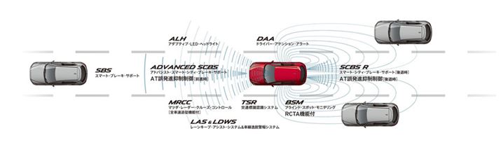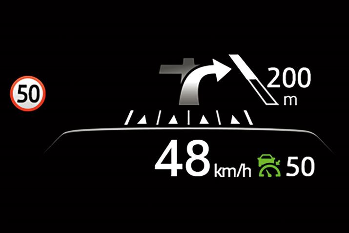 標識を認識してディスプレイに表示する「交通標識認識システム(TSR)」も搭載。これも最近のマツダ車で搭載が進んでいる機能だ