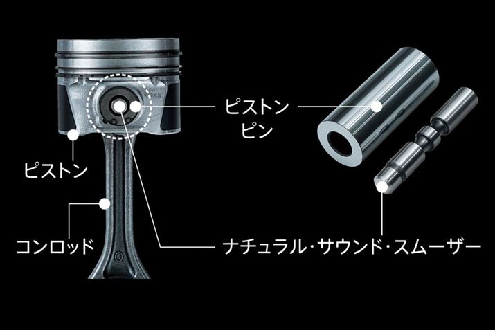 ディーゼルエンジンに備わる「ナチュラル・サウンド・スムーザー」は、コンロッドとピストンをつなぐ部分につけられる一種のばね。振動を吸収することでディーゼルエンジンならではの騒音を抑える