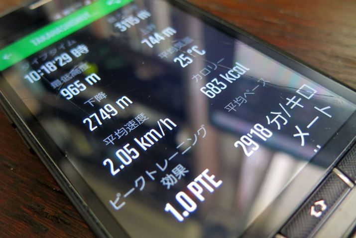 リストウォッチでデータを確認できるのはありがたい。だが、その大きさには限度があり、わかりやすさを考えれば、やはりスマートフォンと連携させ、大きな画面で確認できるのは便利だ。だが、「スパルタン ウルトラ ホワイト」で利用するスマートフォンアプリ「SUUNTO MOVESCOUNT」は、あまりにも多くのバッテリーを消耗してしまう。僕のスマートフォンとの相性や、同時に使用していたカメラ機能などが消費した電力もあるので正確には判断しかねるが、通常の2〜3倍以上バッテリーを消費したような気がする。事実、僕のスマートフォンの場合は半日でバッテリーが切れてしまい、最後までデータを取れないことが多かった。このアプリが改善されない限り、僕なら、スマートフォンとの連携は短時間の登山の時のみにとどめ、長期の山歩きでは使わないであろう。