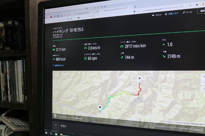 パソコンでのデータを見るとこのようになる。スマートフォンよりもできることが増え、データの管理や検索も非常にスムーズ。マップも大きく、使いやすい。高機能なリストウォッチを使うと、帰宅してからパソコン上で登山を反芻(はんすう)するのが楽しくなる。自分の体力やペース配分などを正しく把握することは、次の山行を計画するにも大きく役立つはずだ