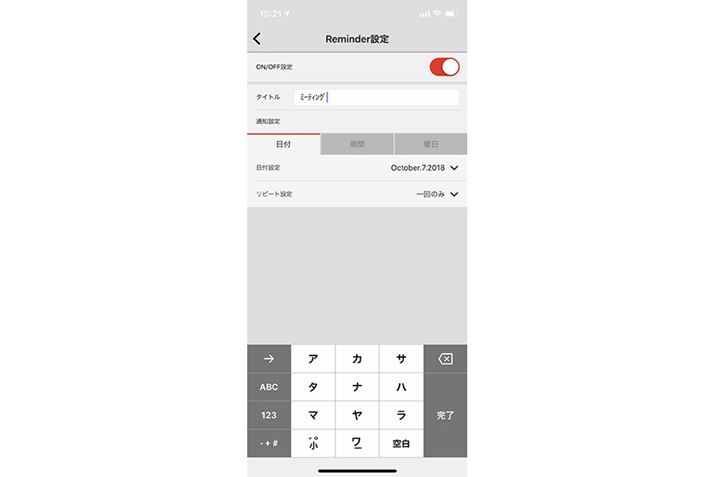 リマインダー設定画面。それぞれタイトルを入力する必要がある