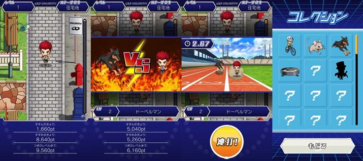 「ゲーム」では、ポイントを使用してアバターが走行。道程では「ライバル」が出現し、ミニゲームで勝利するとその「ライバル」をコレクションできる。