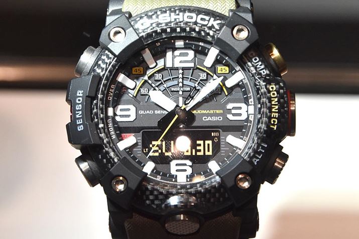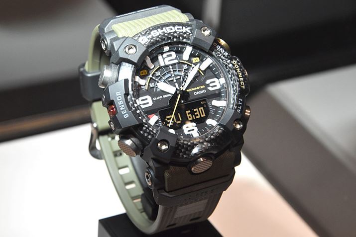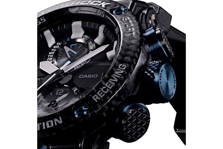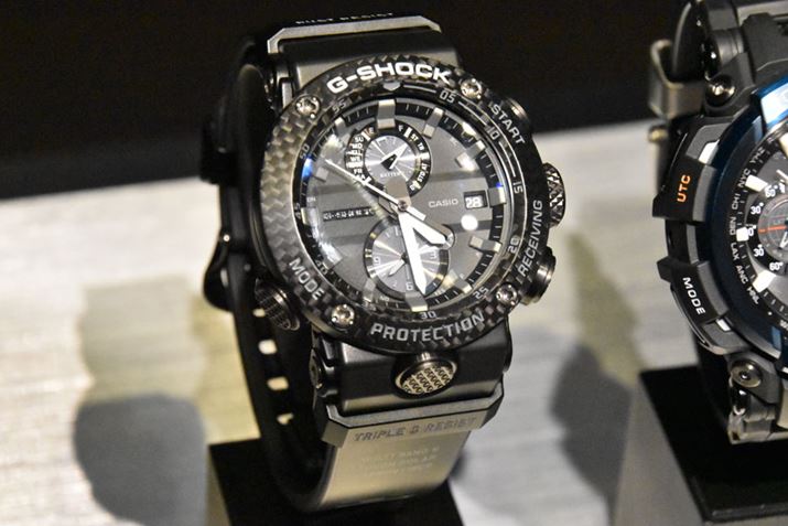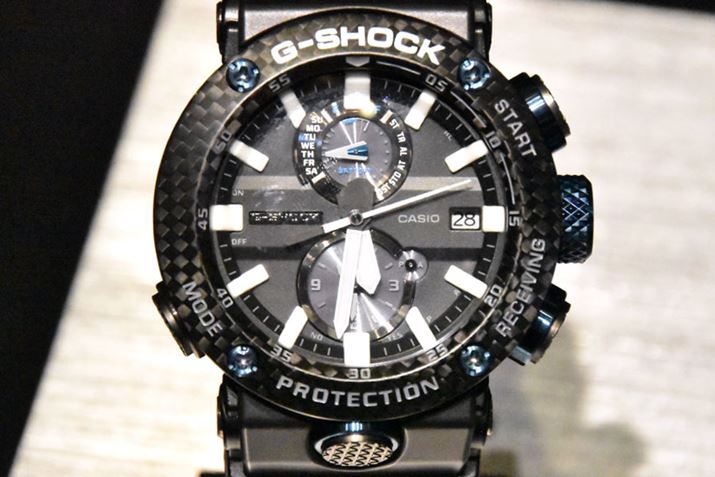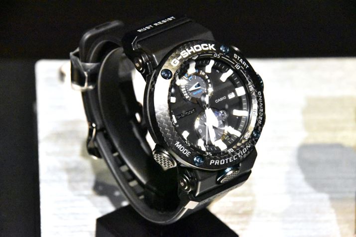 まず、2019年春夏シーズンの「G-SHOCK」新製品の中で最注目なのが、航空コンセプトの「GRAVITYMASTER(グラビティマスター)」シリーズから誕生した「GWR-B1000」だ。新開発の耐衝撃構造「カーボンコアガード構造」を採用しており、高強度かつシリーズ最軽量を実現している。