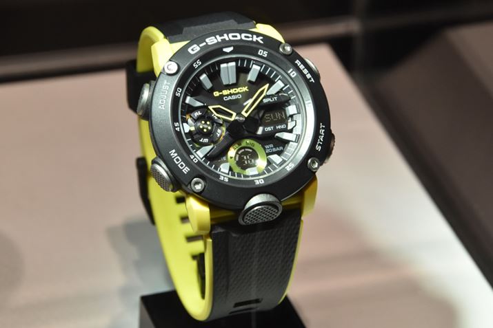同じく新開発の耐衝撃構造「カーボンコアガード構造」を採用したアーバンアウトドアスタイルモデルで、バンド交換にも対応する「GA-2000」は、2019年3月に発売。ケース素材には、カーボン繊維入りファインレジンを使用する。