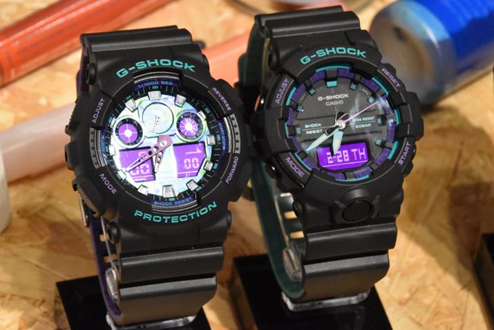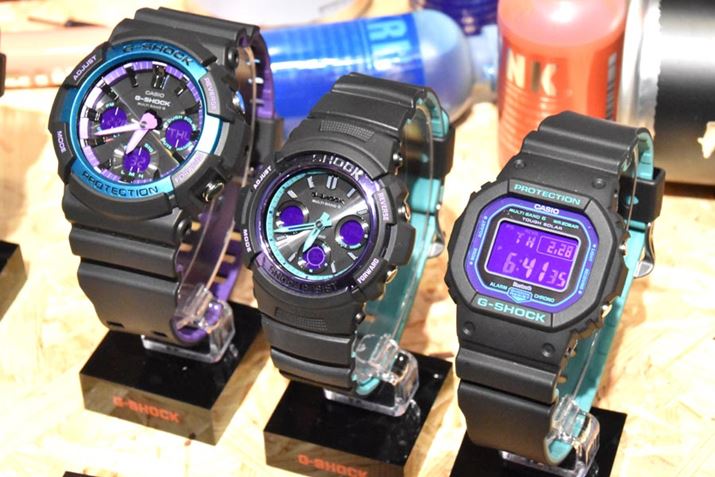 マットな質感にネオンのようなパープルが映える、90年代に代表されるレトロスポーツテイストをテーマカラーにしたモデルが5機種登場。ブラックをベースカラーに、ベゼルや文字板に差し色としてネオンのようなパープルを取り入れ、ローテク感のあるカラーリングを現代にアップデートしている。2019年4月発売。