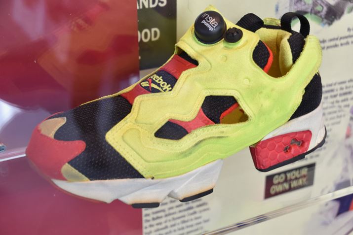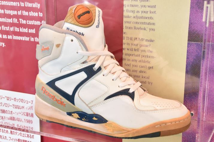1989年に発売されたバスケットボールシューズ「The Pump(ザ・ポンプ)」。タンの上のポンプをプシュプシュ押して空気を入れ、フィット感を調整します