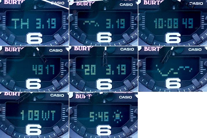 また、時刻モード時の液晶画面に表示できる内容も8パターン用意されており、ボタンのプッシュで選択できる順番や表示のあり/なしもカスタム可能だ。内容は以下の通り。