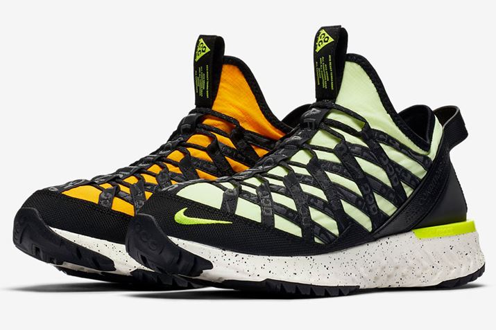 ナイキ「ACG リアクト テラ ゴービー」(品番:BV6344-701)。アッパーは左右ともに外側がイエロー、内側がオレンジのシンメトリーなカラーリング