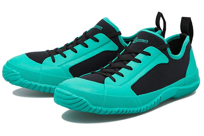 甲から履き口には、ウェットスーツに用いられるネオプレーン素材を使用しており、防水性が高く、ソックス型で伸縮性があるために脱ぎ履きしやすいのも特徴。接地面が広く設計されたアウトソールは、アッパーを覆うような設計のため、ぬかるみなどでも浸水しない。