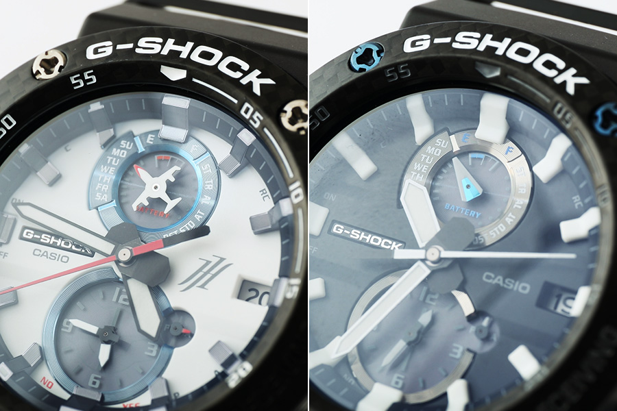 特に今回のように、G-SHOCKのコラボモデルにはディテールまでこだわったものが多い。精細なグラフィックや配色は、長年培ってきた華飾技術のたまものだ。時にはインジケーターのパーツ形状を変更するなど、大胆なアレンジまで行っている。製造に時間や金銭のコストがかかるだけでなく、耐衝撃性というG-SHOCKのアイデンティティも確保するため、性能テストもクリアさせている点にも注目したい。