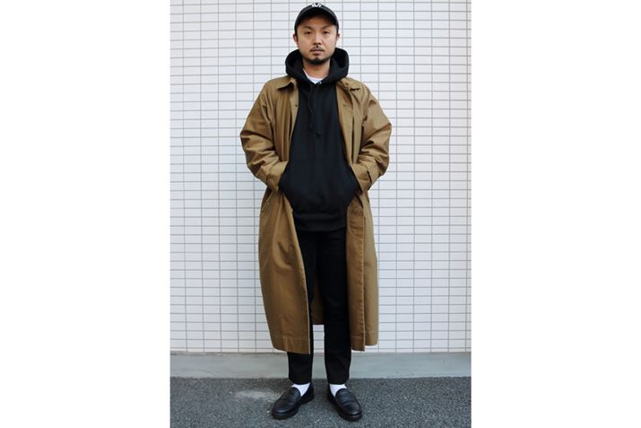 もうすっかり真冬。そのため今回は、防寒性とちょっと大人っぽさを意識してチャンピオンのフーディーと、アナクロノームのロングコートをレイヤード。ボトムスにはユニクロの「スキニーフィットチノ2WAYストレッチ」を合わせ、キャップでストリート感を加えてみました。足首からチラリとのぞくソックスは、あえてのホワイト。これに「オジェック」を合わせてみると……!?
