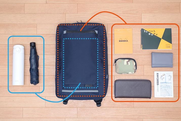 当然、雨が降る日はあるし、喉の渇く暑い日は飲み物を持ち歩きたいもの。大切な書類やPCを守りながら、折りたたみ傘やペットボトルを気兼ねなく使えるというのは大きなアドバンテージだ。
