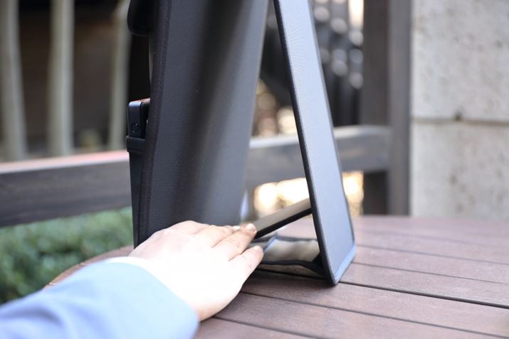 さらにすばらしいのが、このワークパッド、何と自立してくれる。背面のスタンドを傾かせ、下部のパネルを倒して固定させるだけでOKだ。