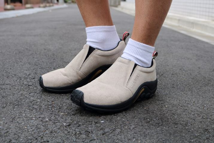 ちなみに、実際に着用してみた感想としては、同じサイズ(今回はともにUS9.0)でも、前者のほうがゆったりと履けて、後者のほうがよりフィットすると感じました。ゆえに、購入の際は「ジャングル モック」なら1/2サイズ小さめを選んでみるとちょうどよいかと。もちろんソックスを厚手にすれば、そこもクリアできますが、どちらにしても1度実際に試着することをおすすめします。