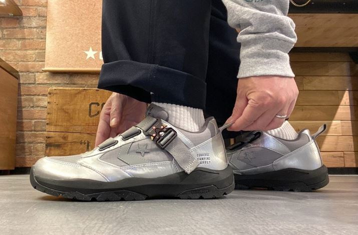 「コンバース キャンピングサプライ」は、1990〜2000年代の初頭に登場したアーカイブモデルをモダンにアップデートしたシリーズ。オリジナルモデルを特徴づけるディテールやフォルムをベースに、今っぽくボリューミーなフォルムへとアレンジし、さらに頑強なアウトドアスペックまでも搭載したフットウェアラインです。そんな「コンバース キャンピングサプライ」から、火の粉がついても燃えにくい素材を採用した「シェブロン&スター RSS CP FR」が登場!