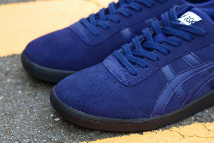 素材は耐久性が高く、履き込むほどに足になじんでいくスエード。前足部は、切り替えのないワンピース構造を採用することで、ライディング中の激しい動きによる損壊リスクを軽減しています。さらに、アッパーサイドに配された「アシックスストライプ」がスポーティーな味わいをもたらし、シュータンからトゥまでを低く設計したロープロファイルなフォルムが都会的でモダンな印象を与えます。これは同時に、アディダス「SAMBA(サンバ)」に代表される、昨今のデザイントレンドとも言えます。