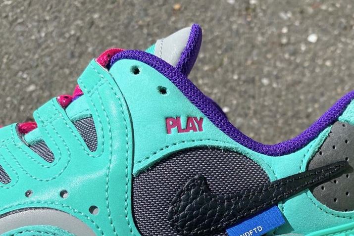 デザイン面でも個性が際立ちます。「PLAY」や「DIRTY」の文字が施されたピンクのレタリングは、ターコイズブルー調の「ライトメンタ」のベースカラーやパープルのトリミングと相まって、ユニークな印象を後押し。この絶妙な配色は、シューズ全体のバランス感をしっかりキープしながらも、個々のディテールが引き立つように計算されています。目の肥えたストリートファッション好きからも熱い注目を集めることでしょう!