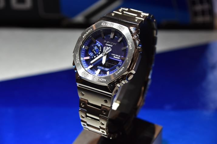 G-SHOCK初号機から続く無駄を省いた角型デザインを、フルメタル外装で受け継ぐ2つのマスターピースに、鮮やかなブルーをあしらったモデルが仲間入りした。